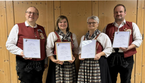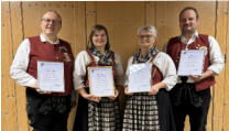 Das Fotor zeigt die vier Geehrten, Josef Werner Schneider, Martina